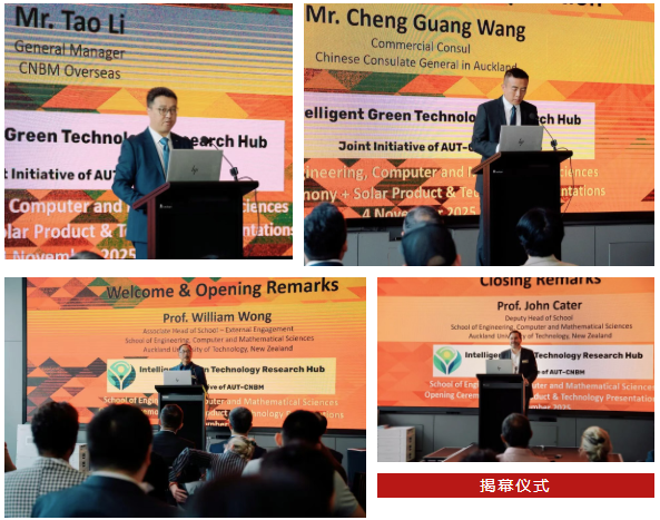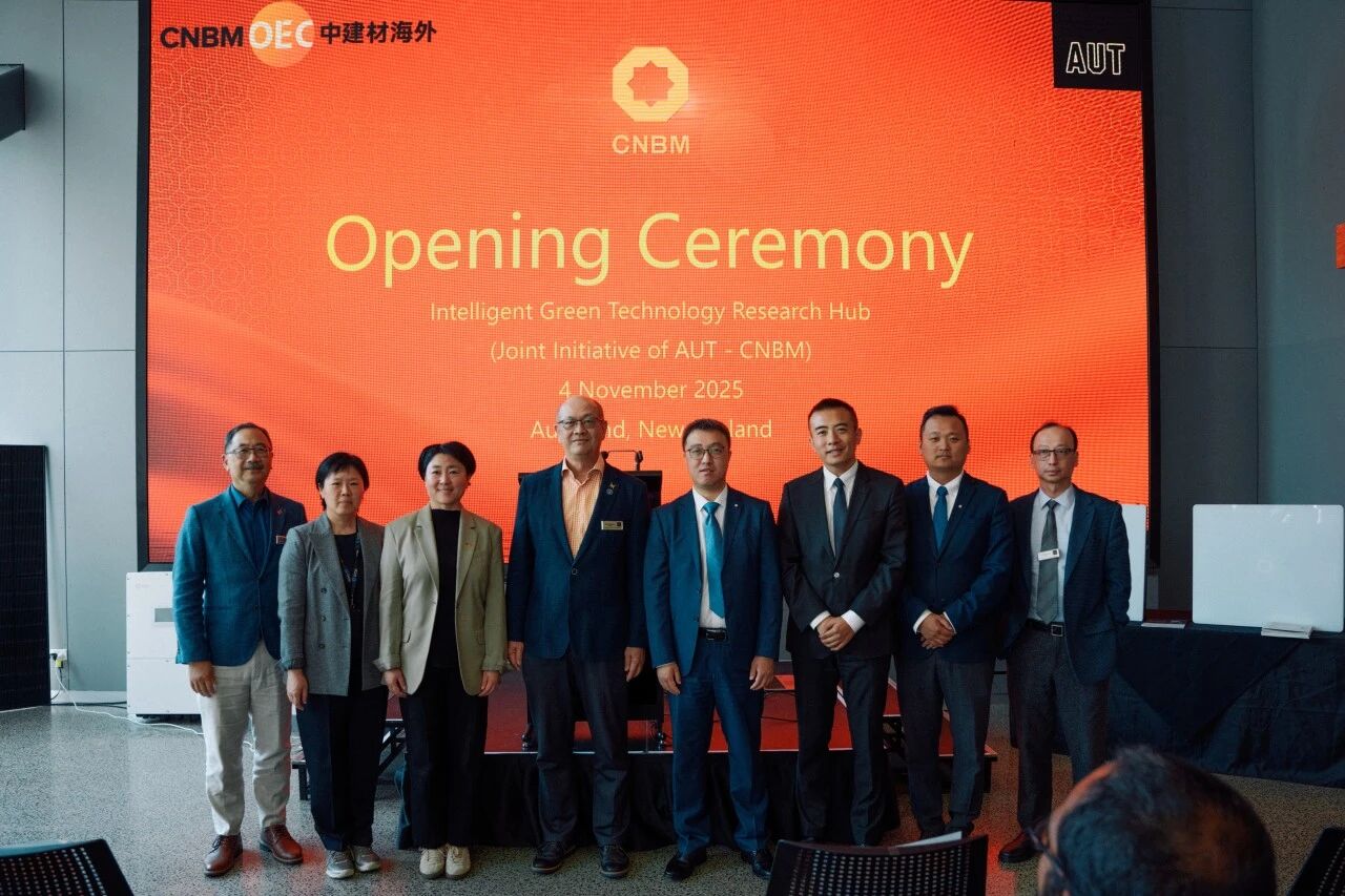 2025年11月4日,由中建材海外下属中国建材国际新西兰有限公司(以下简称“新西兰公司”)与新西兰奥克兰理工大学(AUT)联合发起的“Intelligent Green Technology Research Hub(智慧绿色科技联合研究中心)”正式成立,在奥克兰理工大学校园内举行隆重揭幕仪式,中国驻奥克兰总领馆经商处主任王程光领事、负责教育事务的领事于立群,中建材海外经济合作有限公司总经理李韬,奥克兰理工大学代表Tek Tjing Lie教授、Peter Chong教授,中国建设银行新西兰分行副行长张云霞,行业合作伙伴及多家新能源企业代表出席活动。