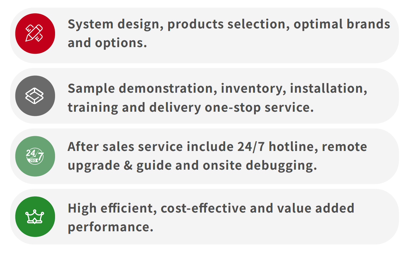 Include 24/7 hotline, remote upgrade & guide, and onsite debugging.