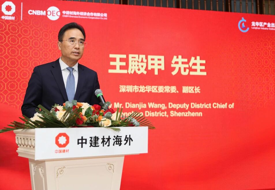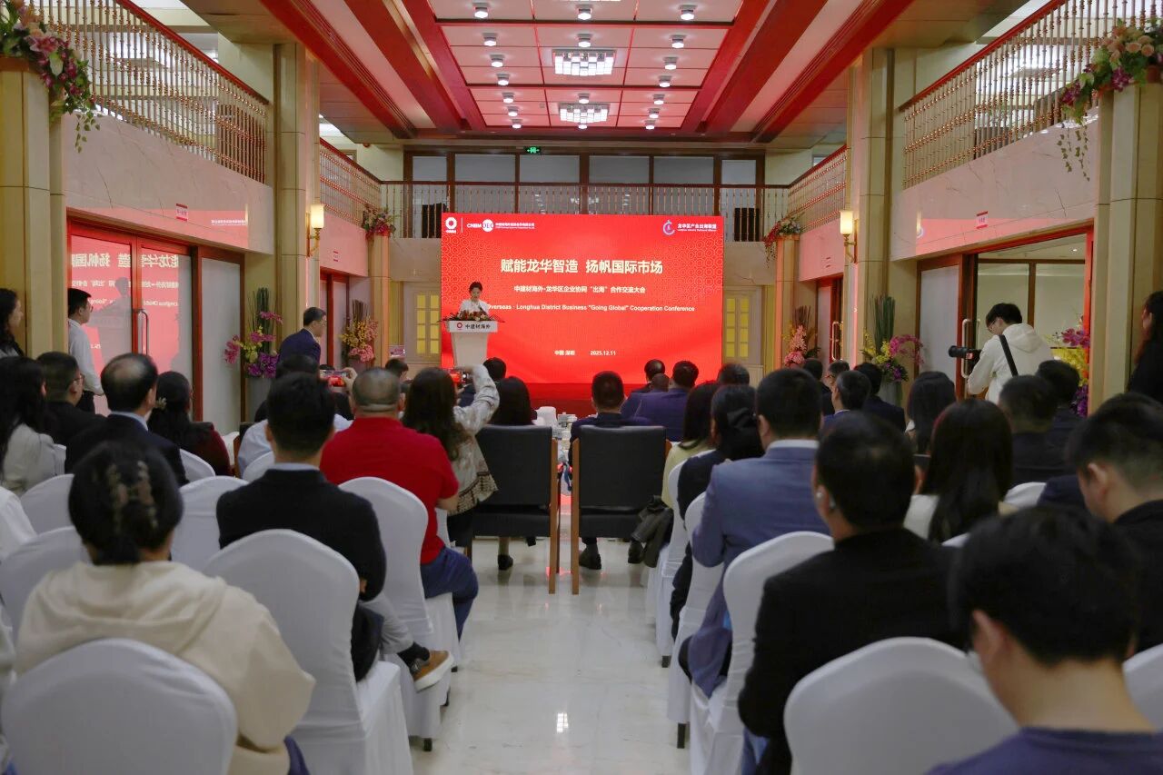 陈咏新在致辞中介绍了中建材投资公司全球供应链贸易服务新模式,将国内优势产业链系统、现代供应链体系与海外属地市场接驳,集“仓储、物流、批发、零售、渠道整合、展销”等多元要素于一体化,助力中国技术、中国制造和中国品牌“走出去”。他表示,未来中建材将与龙华区的合作伙伴共建开放合作新平台、共塑产业升级新生态、共筑出海安全新屏障,进一步推动“龙华制造”的优质产品向海外市场深度拓展,让“龙华智造”的优势资源进一步走向世界。