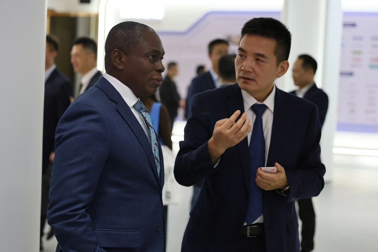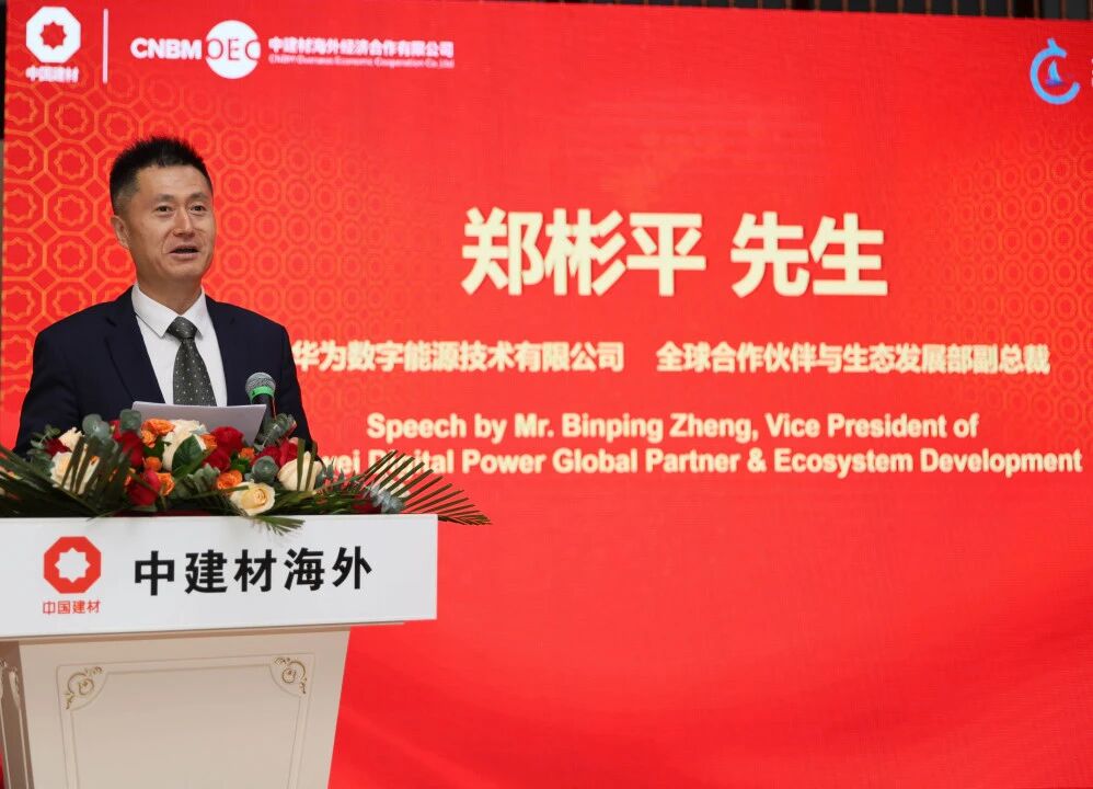 华为数字能源技术有限公司全球合作伙伴与生态发展部副总裁郑彬平作为合作企业代表,介绍了与中建材的协同合作成果。双方在西非区域共同搭建“技术+平台+运营”三位一体合作模式,依托中建材海外的属地化服务网络和华为公司的技术创新,实现了“1+1>2”的协同效应,为绿色能源领域企业出海提供创新路径。