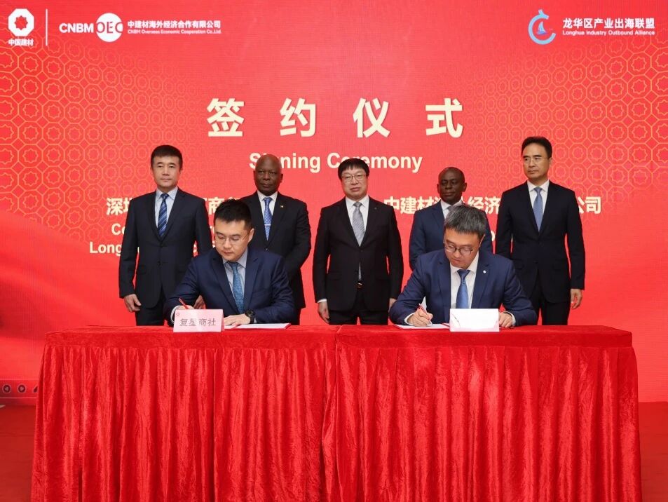 大会现场举行战略合作签约仪式。中建材海外与龙华区商务局签署“共商共建共享海外仓战略合作协议”,为区域企业抱团出海搭建起重要支撑平台。