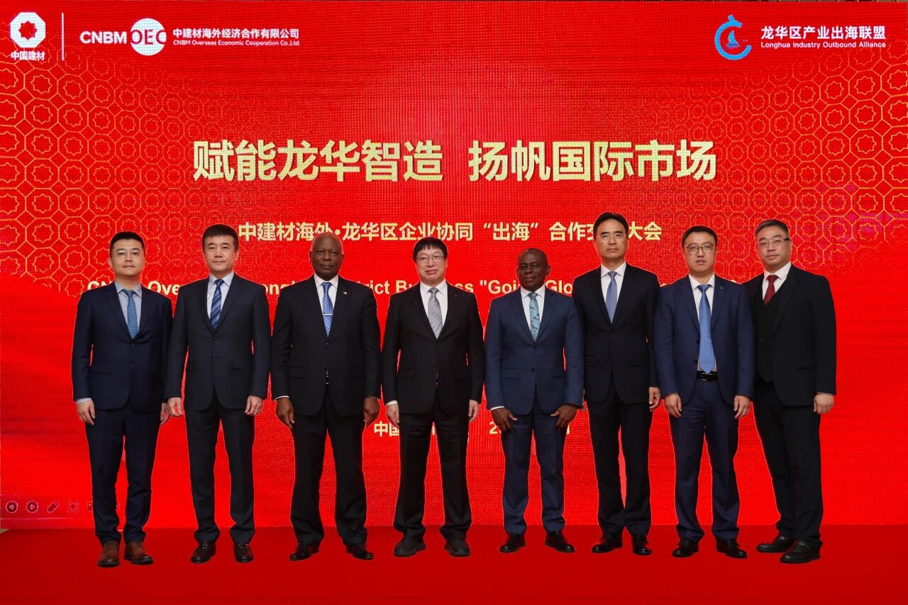 12月11日,由中建材海外与深圳市龙华区商务局共同主办的“中建材海外・龙华区企业协同“出海”合作交流大会”在深圳隆重举办。本次大会以“赋能龙华智造·扬帆国际市场”为主题,旨在依托中建材海外的全球资源网络,搭建精准高效的“出海”对接平台,助力龙华区企业拓展海外市场,共享“一带一路”倡议发展机遇。喀麦隆驻华大使马丁·姆巴纳(Martin Mpana),加纳驻广州总领事西德尼·埃利斯(Sidney Kwesi Ellis),中国建材集团有限公司党委常委、副总经理王于猛,深圳市龙华区委常委、副区长王殿甲,中建材投资有限公司党委书记、董事长陈咏新出席活动并致辞,深圳市龙华区商务局局长钟建生、中建材海外总裁李韬以及龙华区40余家外贸企业代表以及部分行业专家代表等参加活动。