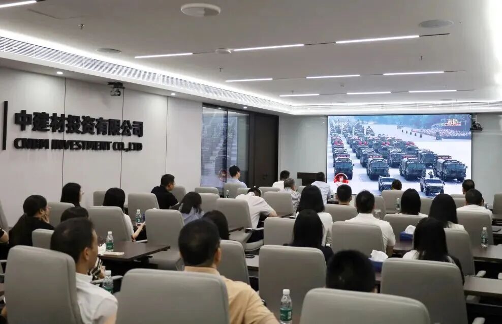 为共同见证这一庄严的历史时刻,中建材投资海内外企业组织员工集中观看大会直播,认真聆听习近平总书记重要讲话,共同见证人民军队的威武雄姿,感受祖国的强大与繁荣。